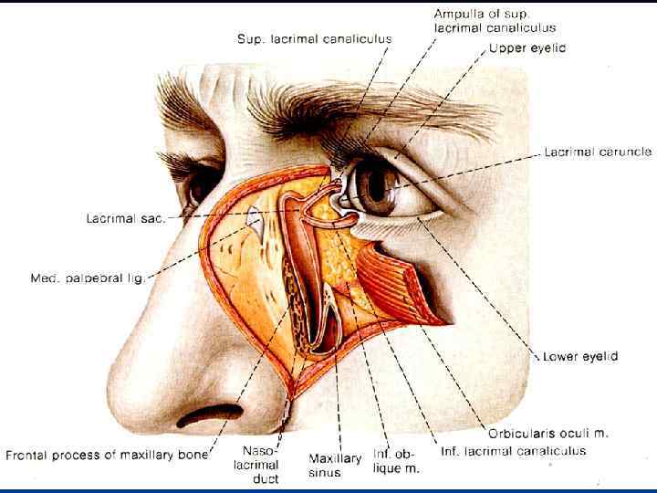 n Глаза снабжены большим числом вспомогательных приспособлений для их защиты. Это брови, благодаря которым стекающий со лба пот не попадает в глаза. Веки и ресницы защищают глаза от пыли. Веки постоянно смыкаются и размыкаются (моргание), равномерно смачивая поверхность глаза слезной жидкостью. Слезы образуются в слезных железах, расположенных в наружной части глазницы над глазом. Глаз имеет форму шара и поэтому называется глазным яблоком. Такая форма позволяет ему двигаться в определенных пределах в полости костного углубления - глазнице. Движение глаза достигается сокращением шести глазных мышц. Они прикреплены одним своим концом к стенке глазницы, а другим - к глазному яблоку.