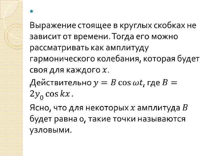 Тогда частицы, которые колеблются в одной точке (плоскости) среды, будут воздействовать на прилегающие, заставляя их участвовать в колебательном движении, тем самым передавая колебательный процесс дальше. Такова физика колебательного процесса. Модель процесса: шнур