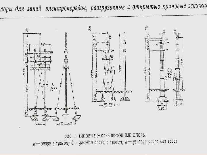 Опоры для линий электропередач изготавливают как из обычного, так и из предварительно напряженного железобетона. Железобетонные опоры могут иметь самые разнообразные конструктивные формы и поперечные сечения. Они могут быть сплошными или пустотными, цельными или составленными из отдельных колец. Пролет между опорами линий электропередачи определяют в зависимости от районных климатических условий, сечения проводов и монтажных нагрузок.