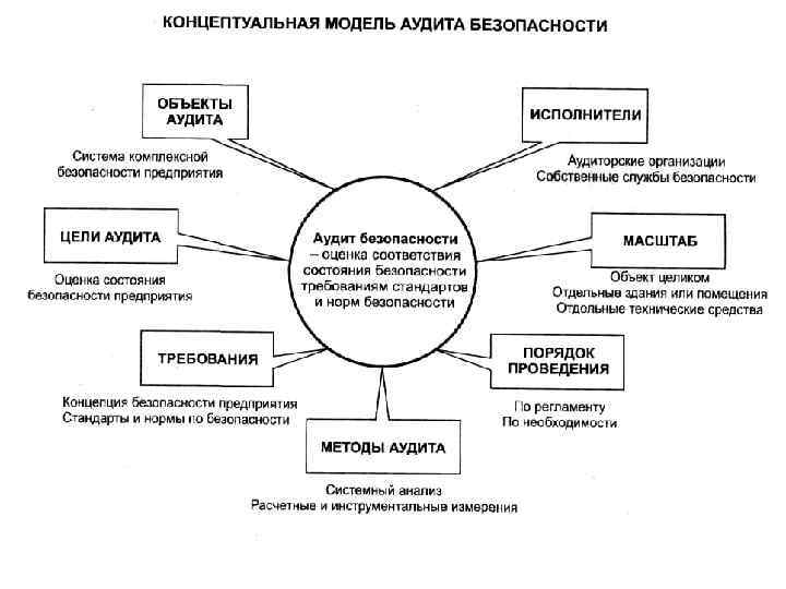 Аудит безопасности является действенным инструментом оценки безопасности и управления рисками. Предотвращение угроз безопасности означает, в том числе и защиту экономических, социальных и информационных интересов фирмы. Отсюда вывод, что аудит безопасности становится инструментом экономического менеджмента. В зависимости от того, кто проводит аудит безопасности сотрудники фирмы или независимая аудиторская компания, его также можно разделить на внутренний и внешний. Масштабы аудита: аудит безопасности всей фирмы в комплексе; аудит безопасности отдельных зданий и помещений (выделенные помещения); аудит оборудования и технических средств конкретных типов и видов; аудит отдельных видов и направлений деятельности: экономической, экологической, информационной, финансовой и т. д. Внутренний аудит позволяет оценить: соблюдение законодательных требований по безопасности; выполнение требований стандартов и норм по безопасности; наличие узких мест в системе безопасности фирмы и спланировать работу по их устранению; состояние культуры безопасности в среде специалистов и сотрудников фирмы; возможные экономические потери и нанесение ущерба в любой сфере деятельности.