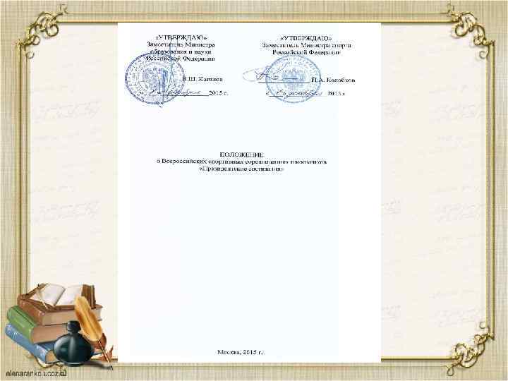 • • • УКАЗ ПРЕЗИДЕНТА РОССИЙСКОЙ ФЕДЕРАЦИИ О ПРОВЕДЕНИИ ВСЕРОССИЙСКИХ СПОРТИВНЫХ СОРЕВНОВАНИЙ (ИГР) ШКОЛЬНИКОВ В целях создания новой национальной системы физкультурно-спортивного воспитания подрастающего поколения, направленной на совершенствование физической подготовки школьников, их массовое привлечение к занятиям физической культурой и спортом, а также формирования у детей и подростков здорового образа жизни постановляю: 1. Согласиться с предложением Правительства Российской Федерации о возложении на Министерство образования и науки Российской Федерации и Министерство спорта, туризма и молодежной политики Российской Федерации функций по организации и проведению ежегодно, начиная с 2010 года, Всероссийских спортивных соревнований школьников "Президентские состязания" и Всероссийских спортивных игр школьников "Президентские спортивные игры", а также по утверждению порядка их проведения. 2. Правительству Российской Федерации обеспечить финансирование расходов, связанных с реализацией настоящего Указа. 3. Рекомендовать органам государственной власти субъектов Российской Федерации и органам местного самоуправления принять участие в подготовке и проведении Всероссийских спортивных соревнований школьников "Президентские состязания" и Всероссийских спортивных игр школьников "Президентские спортивные игры". 4. Признать утратившим силу Указ Президента Российской Федерации от 7 июня 1996 г. № 823 "О целевой спортивно-оздоровительной программе "Президентские состязания" (Собрание законодательства Российской Федерации, 1996, № 24, ст. 2878). 5. Настоящий Указ вступает в силу со дня его подписания. Президент Российской Федерации Д. МЕДВЕДЕВ Москва, Кремль 30 июля 2010 года № 948