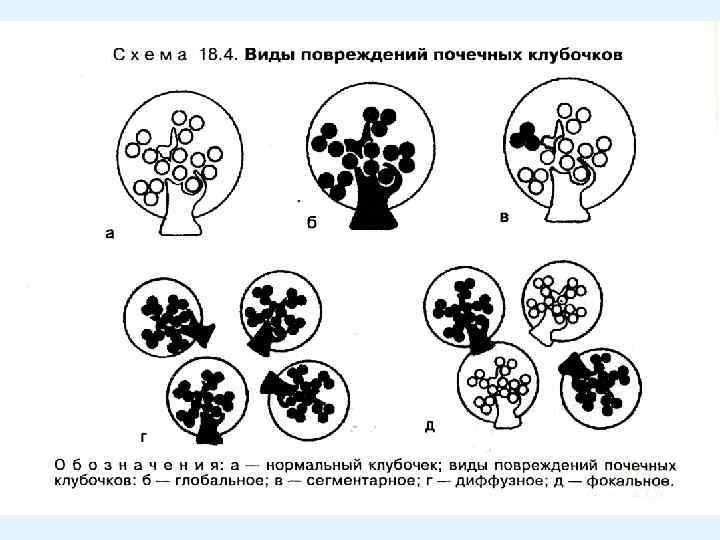 КЛАССИФИКАЦИЯ ГЛОМЕРУЛОПАТИЙ ПО РАСПРОСТРАНЕННОСТИ ПРОЦЕССА • Очаговые (поражение менее 70% клубочков) • Диффузные (поражение 70% клубочков и более) • Сегментарные (с изменениями в отдельных капиллярных петлях и сегментах клубочков) • Тотальные (при поражении всего клубочка)