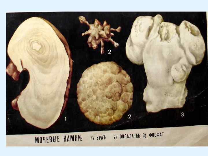 НЕФРОЛИТИАЗ (УРОЛИТИАЗ, ПОЧЕЧНО-КАМЕННАЯ БОЛЕЗНЬ) • образование камней (фосфаты, ураты, оксалаты, карбонаты и др. ) в почечных чашечках, лоханках и мочеточниках