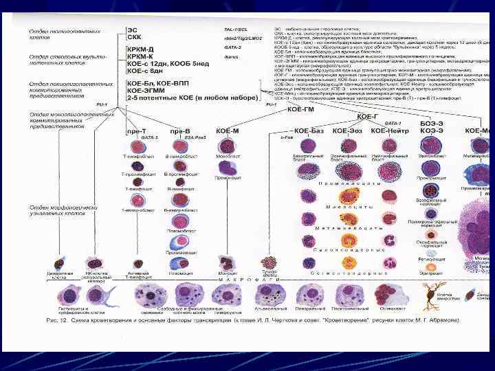 Клеточный состав костного мозга % Клеточный состав костного мозга – 50 – 250 кл в 1 мкл Мегакариоциты - 0, 2 -0, 6 Бласты – 0, 1 -1, 6 Миелобласты – 0, 2 -1, 7 Лимфоциты- 4, 3 -13, 7 Промиелоциты – 1, 0 -4, 1 Моноциты – 0, 7 -3, 1 Миелоциты – 7, 0 – 12, 2 Метамиелоциты – 8, 0 - 15, 0 Палочкоядерные – 12, 8 -23, 7 Сегментоядерные 13, 1 -24, 1 Всего нейтрофильного ряда- 52, 7 -68, 9 Эозинофилы – 0, 5 -5, 8 Базофилы – 0 -0, 5 Эритробласты- 0, 2 -1, 1 Пронормоциты- 0, 1 -1, 2 Нормоциты базофильные -1, 4 -4, 6 Нормоциты полихроматофильные 8, 9 -16, 9 Нормоциты оксифильные - 0, 8 -5, 6 Всего клеток эритроидного ряда – 14, 5 – 26, 5 ЛЭС – 2: 1 – 4: 1