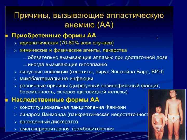 Апластические анемии – гетерогенная группа гематологических заболеваний, общим морфологическим признаком которых является панцитопения в периферической крови и аплазия миелоидной ткани