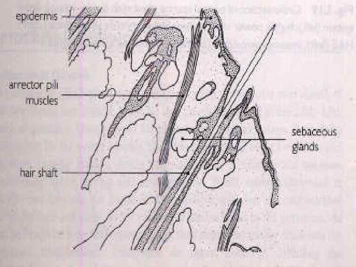 Сальные железы (Malpighi 1869) • Все участки, кроме ладоней и подошв. • Тип секреции – голокриновый • Наиболее мелкие связаны с фолликулами длинных волос, а крупные – с фолликулами пушковых. • Встречаются свободные сальные железы без связи с фолликулами – на лице, головке, грудном соске, малых половых губах, клиторе.