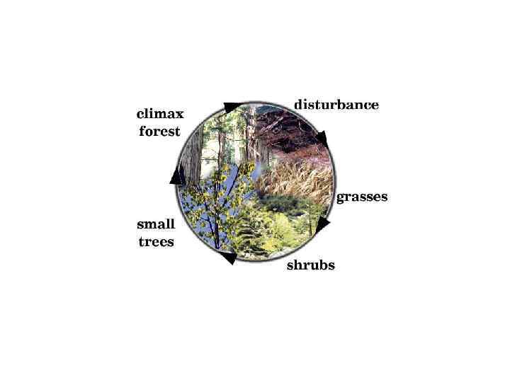 При отсутствии нарушений процесс сукцессии завершается формированием сообщества, находящегося в относительном равновесии со средой – климакса, или климактерического сообщества. Климакс, в экологии – относительно устойчивое состояние растительного покрова в биогеоценозе, которое завершает процесс сукцессионной смены фитоценозов. Устойчивое в целом состояние фитоценоза сочетается с местными непрерывными изменениями в результате действия факторов среды (ветер и пр. ).