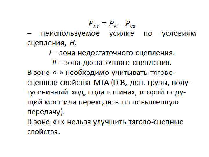 Ркр. н = Рк. н - Pf - Pα Уравнение справедливо при достаточном сцеплении ходового аппарата трактора с почвой Ркр. н = Fс - Pf - Pα Уравнение справедливо при недостаточном сцеплении ходового аппарата трактора с почвой