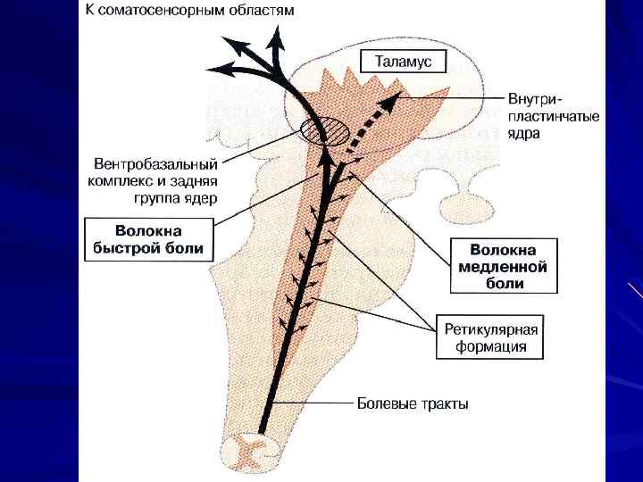 БОЛЕВАЯ АКТИВАЦИЯ КОРЫ БОЛЕВАЯ АФФЕРЕНТАЦИЯ → АКТИВАЦИЯ РЕТИКУЛЯРНОЙ ФОРМАЦИИ → АКТИВАЦИЯ КОРЫ ГОЛОВНОГО МОЗГА