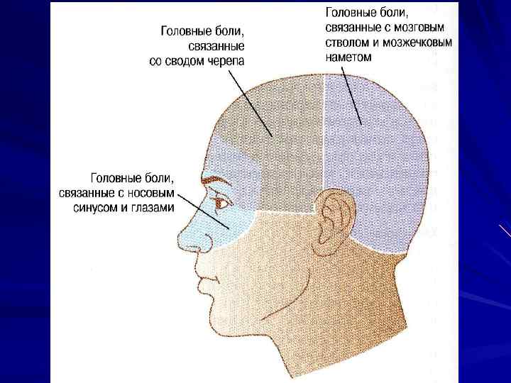ГОЛОВНАЯ БОЛЬ ГДЕ ЕСТЬ РЕЦЕПТОРЫ: dura mater (артерии и венозные синусы) мышцы головы полость носа и носовые пазухи мышцы глаз