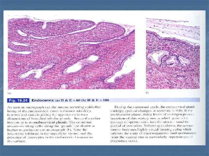 Влагалище, H&E Присутствуют лимфоидные узелки. Мышечная оболочка имеет до 3 -х слоев. Адвентиция – рыхлая СТ. Во время эстрогеновой стимуляции эпителий утолщается, клетки накапливают гликоген, десквамируют. Бактерии метаболизируют гликоген до молочной кислоты, увеличивая кислотность влагалища.