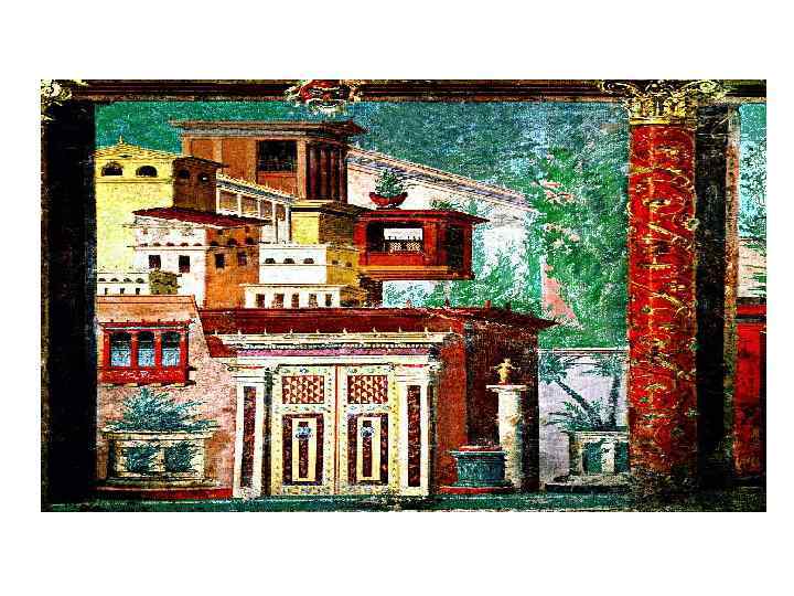 Руины римских поселений одноцветны т. к. здания утратили окраску. Фреска дает представление как выглядела городская улица.