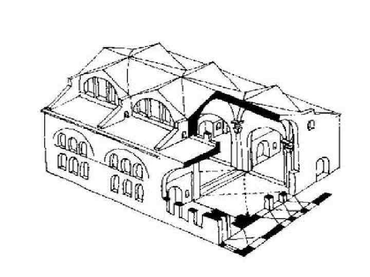 Базилика Максенция — Константина на Римском форуме (306 -312) — трехнефное сводчатое здание площадью 6 тыс. кв. м. Наружные стены прорезаны ярусами арочных пролетов.