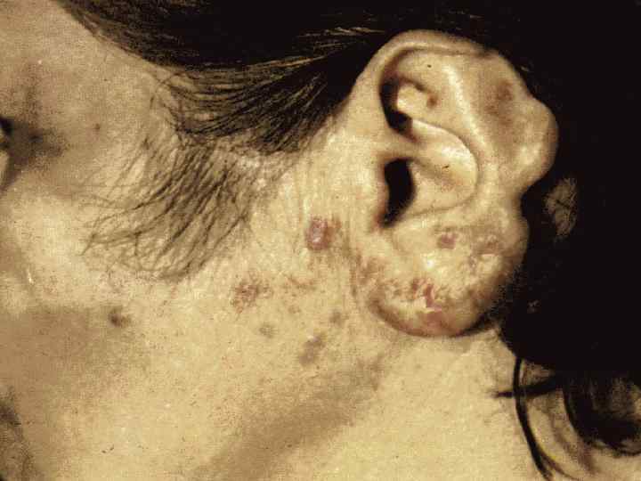 Осложнения туберкулезной волчанки часто рецидивирующее рожистое воспаление лица n лимфостаз n рак кожи (4%) n