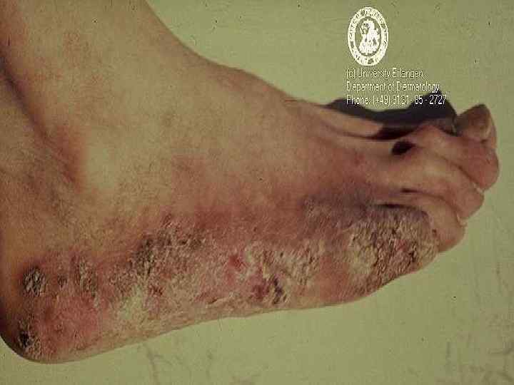 Центробежная эритема Биетта при этой форме характерно появление крупных красных пятен, склонных к периферическому росту, расположенных на лице и других открытых участках кожного покрова n чешуек и инфильтрации кожи нет или ни выражены крайне слабо n рубцовая атрофия не развивается. n