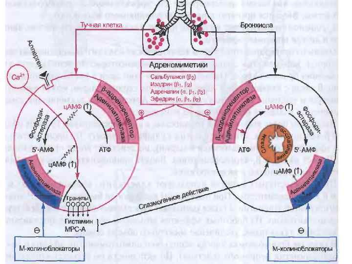 β-АР β 2 -АР расположены на постсинаптической мембране гладкомышечных клеток: бронхов, трахеи, матки, мочевого пузыря, в гладкой мускулатуре сосудов скелетных мышц, сердца, мозга, печени Возбуждение β 2 -АР вызывает расслабление гладкой мускулатуры бронхов, сосудов скелетной мускулатуры, сердца, мозга, печени, ↓ тонуса матки Существуют неиннервируемые β 2 -АР (вне синапсов)