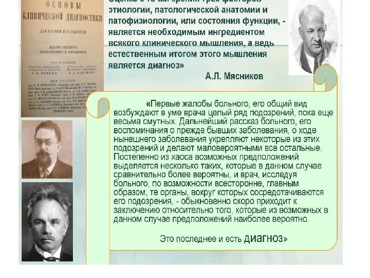 Почему методу расспроса не уделяется должное внимание? • требует много времени, • бытует неверное представление о малой информативности метода, • недостаточное владение техникой расспроса. • М. В. Яновский (1854 -1927) (один из основоположников кардиологии в России) правильно заметил – «анамнез – это самая трудная часть исследования» .