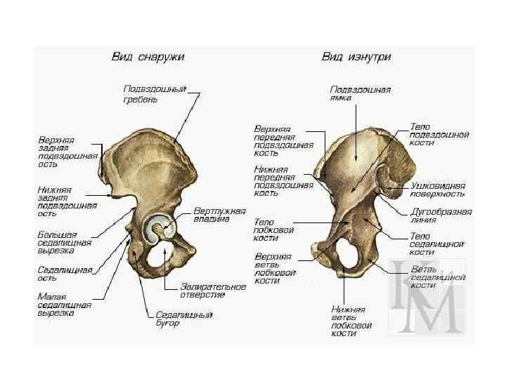• При определении пола учитывают строение черепа, таза, а также морфологические особенности длинных трубчатых костей. Половые различия (диморфизм) наиболее чётко выражены в строении таза, а именно: - женский таз большей частью шире и ниже, чем мужской. Крылья подвздошных костей у женщин развёрнуты в стороны, а у мужчинболее вертикальные. Вследствие этого максимальное расстояние между гребнями подвздошных костей у женщин в среднем больше (28 -29 см), чем у мужчин (25 -27 см); - крестцовая кость у мужчин более длинная и узкая, чем у женщин; - подлобковый угол у мужчин большей частью острый (70 -75 градусов), а у женщин - прямой или тупой (90 -100 градусов); - форма входа в таз у женщин округлая или овальная, а у мужчин напоминает очертания "карточного сердца"; - форма полости малого таза у женщин близка к циллиндрической, а у мужчин напоминает лейку или конус вершиной вниз. Половые различия в морфологии длинных трубчатых костей проявляются в их размерах и развитии рельефа: мужские кости длиннее, массивнее и тяжелее, чем женские, мышечный рельеф на них развит гораздо сильнее. Лучше всего половой диморфизм выражен в строении бедренных костей.