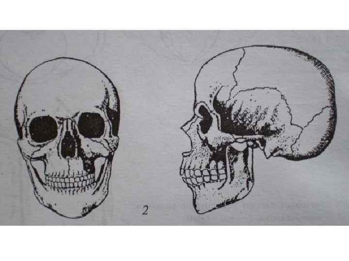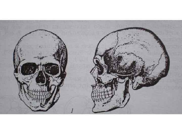 Череп • Череп несет важную информацию: по его размеру возможно определять пол, а по степени зарастания швов свода черепа -– возраст бойца.