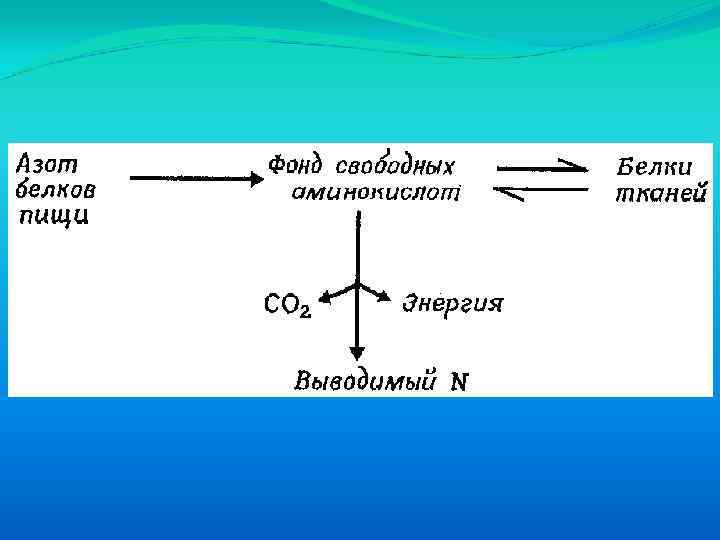 Если количество азота, поступающего в организм с пищей, равно количеству азота, выводимого из организма, то организм находится в состоянии азотистого равновесия. Если в организм поступает азота больше, чем выделяется, то это свидетельствует о положительном азотистом балансе. Состояние, при котором количество выводимого из организма азота превышает его поступление в организм, называют отрицательным азотистым балансом.