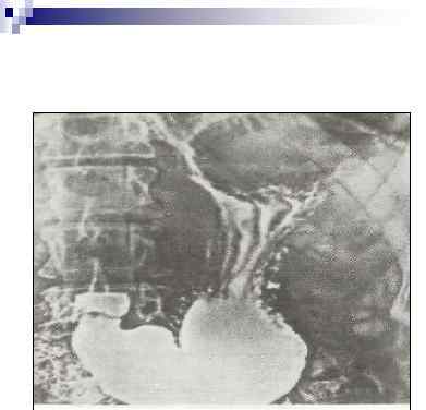 Рентгенограмма толстой кишки, заполненной контрастной массой.