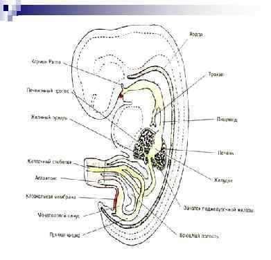 Рудиментарные образования – остатки кишечно-желточного протока (дивертикул Меккеля, кишечнопупочная связка)