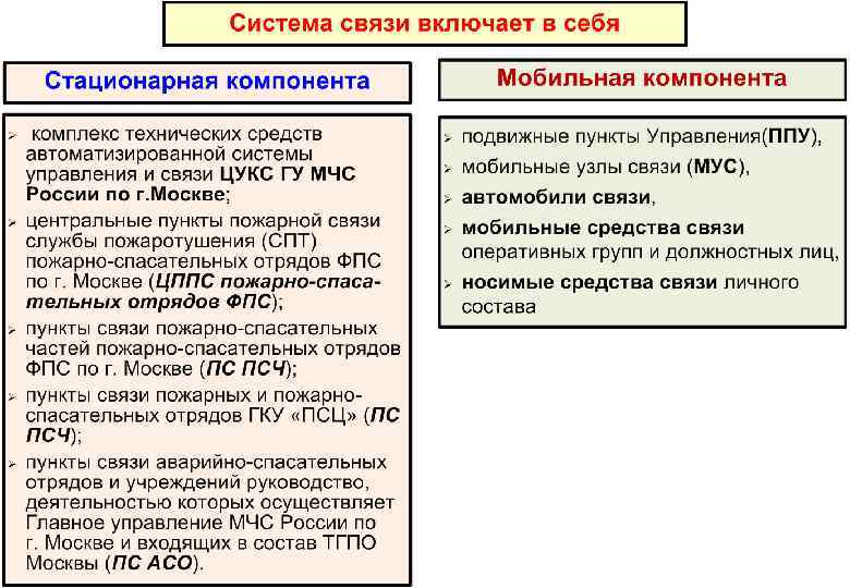 Основные задачи службы связи Пожарной охраны