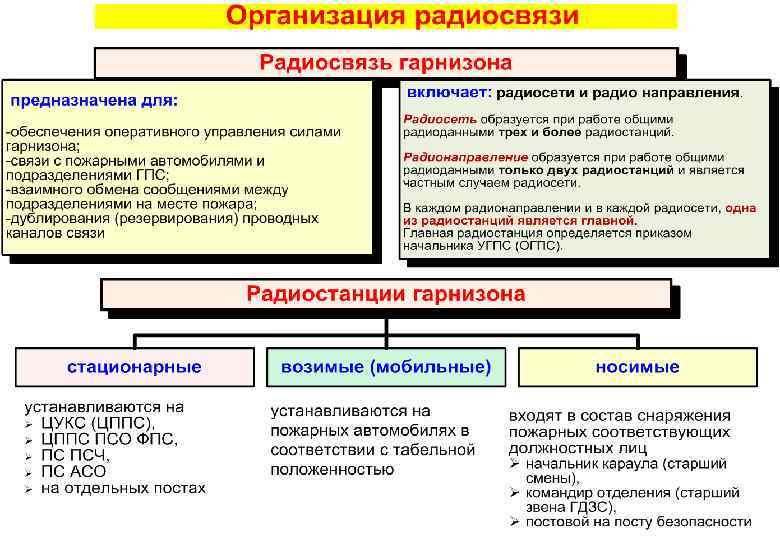 Учебные цели: 1. Изучить со слушателями виды и организацию и связи в гарнизонах Государственной противопожарной. 2. Изучить со слушателями основы радиосвязи, классифика -цию, назначение, общее устройство и основные технические радиостанций и сигнально-переговорных устройств, находящихся на оснащении формирований ГПС. 3. Формировать у слушателей профессионализм. Воспитывать у слушателей чувство ответственности за правильную организацию применения пожарной техники по назначению