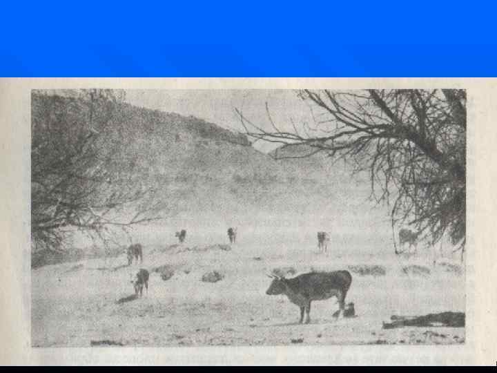 Перевыпас. Угодья, где выпадает слишком мало осадков для выращивания культурных растений традиционно используют для выпаса скота. Но если трава съедается быстрее, чем может возобновляться, почва обнажается и становится подверженной эрозии.