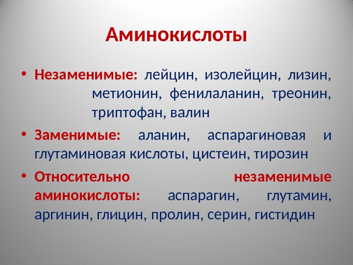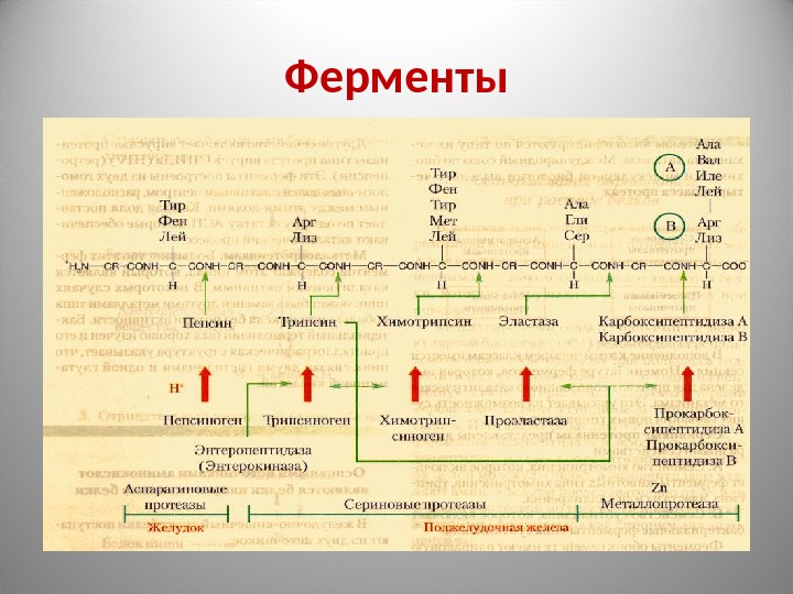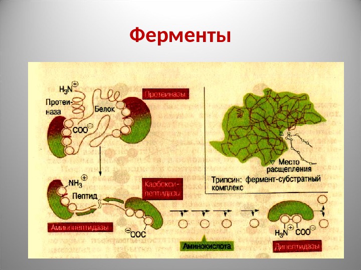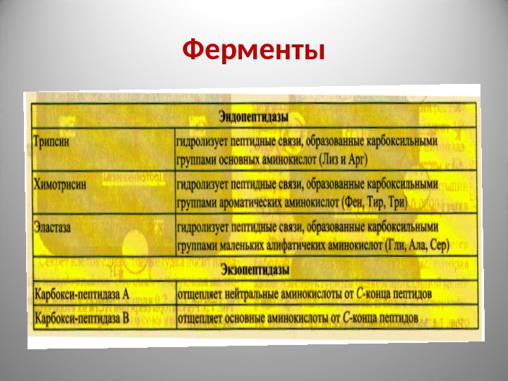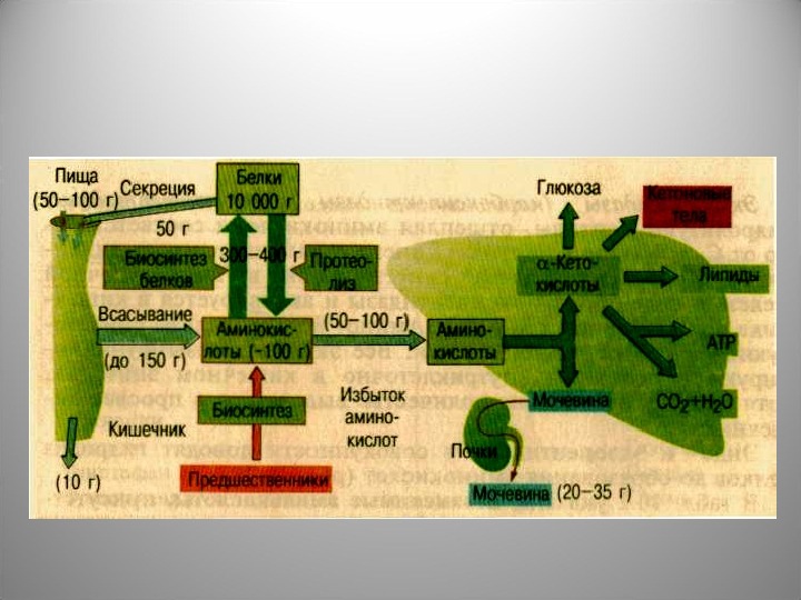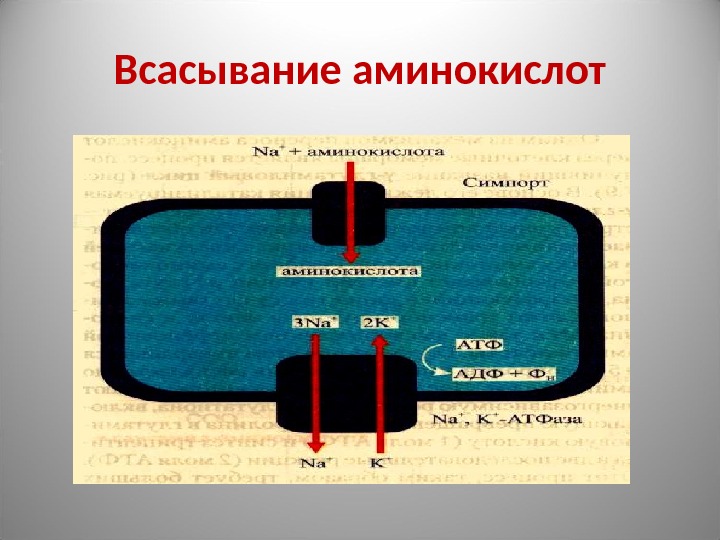 Лекция Переваривание, всасывание и гниение белков в Скачать презентацию Лекция Переваривание, всасывание и гниение белков в 1_perevarivanie_i_vsasyvanie_belkov_a_e.ppt Размер: 972.5 Кб Количество слайдов: 18 Описание презентации Лекция Переваривание, всасывание и гниение белков в по слайдам Лекция Переваривание, всасывание и гниение белков в желудочно-кишечном тракте Обмен белков у человека Белки пищевых продуктов Положительный азотистый баланс Отрицательный азотистый баланс Отрицательный азотистый баланс Аминокислоты • Незаменимые: лейцин, изолейцин, лизин, метионин, фенилаланин, треонин, триптофан, валин • Заменимые: аланин, аспарагиновая и глутаминовая кислоты, цистеин, тирозин • Относительно незаменимые аминокислоты: аспарагин, глутамин, аргинин, глицин, пролин, серин, гистидин Синтез соляной кислоты Ферменты Ферменты Ферменты Ферменты Всасывание аминокислот Гамма-глутамиловый цикл Декарбоксилирование аминокислот в толстом кишечнике Превращение триптофана Зарегистрируйтесь, чтобы просмотреть полный документ! РЕГИСТРАЦИЯ