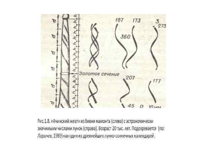 Рис. 4 находка близ с. Гонцы (Украина). Здесь на зубе мамонта также изображены смены лунных фаз. Это один из древнейших лунных календарей эпохи палеолита.