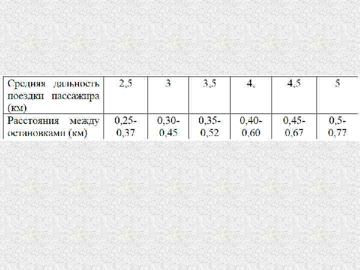 2. Дальность подхода к остановкам городского транспорта для 80 % населения должна быть не более 0, 5 км. Расстояния между остановками зависит от средней дальности поездки пассажира и должны быть следующие.