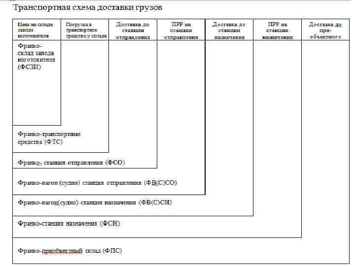 ПОРЯДОК СОСТАВЛЕНИЯ КАЛЬКУЛЯЦИИ ТРАНСПОРТНЫХ РАСХОДОВ (КТР) Наиболее распространенные схемы доставки материалов