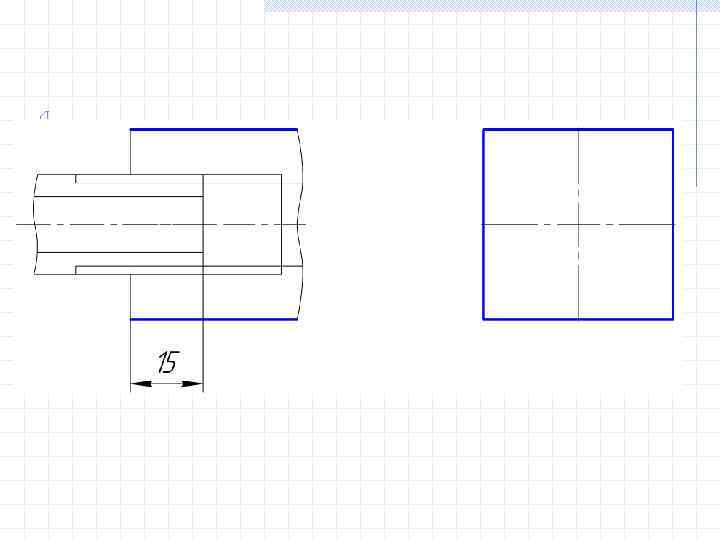 ГОСТ 2. 311 -68 Изображение резьбы 9. Фаски на стержне с резьбой и в отверстии с резьбой, не имеющие специального конструктивного назначения, в проекции на плоскость, перпендикулярную к оси стержня или отверстия, не изображают. Сплошная тонкая линия изображения резьбы на стержне должна пересекать линию границы фаски. 11. На разрезах резьбового соединения в изображении на плоскости, параллельной его оси, в отверстии показывают только часть резьбы, которая не закрыта резьбой стержня.