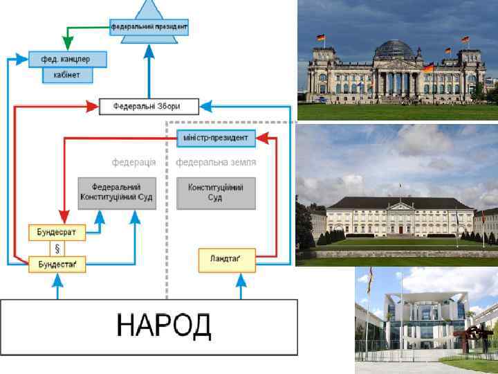 Президент обирається населенням, очолює та дентська формує уряд, не може розпустити республіка парламент, має право накладати вето на закони. Уряд не відповідальний перед парламентом Парла. Формально глава держави – Президент. ментська Фактично правлять уряд та Прем’єр. Уряд республіка формується за наслідками парламентських виборів. Прем’єром, як правило, є лідер партії, що має найбільше депутатів або більше за інші партії коаліції. Президента обирають парламент чи особливий орган, дуже рідко, як в Австрії, населення. Парламент може висловити вотум недовіри уряду, що тягне його відставку. Президент може за пропозицією уряду розпустити парламент. Змішана Президента обирає населення. Уряд очолює республіка Прем’єр. Уряд відповідальний перед Президентом і парламентом. Президент може розпустити парламент за певних обставин. У президентсько-парламентських республіках уряд формує Президент, у парламентськопрезидентських – парламент. США, країни Латинської Америки ФРН, Італія, Угорщина, Латвія, Австрія Франція, Фінляндія, Румунія, Польща, Україна