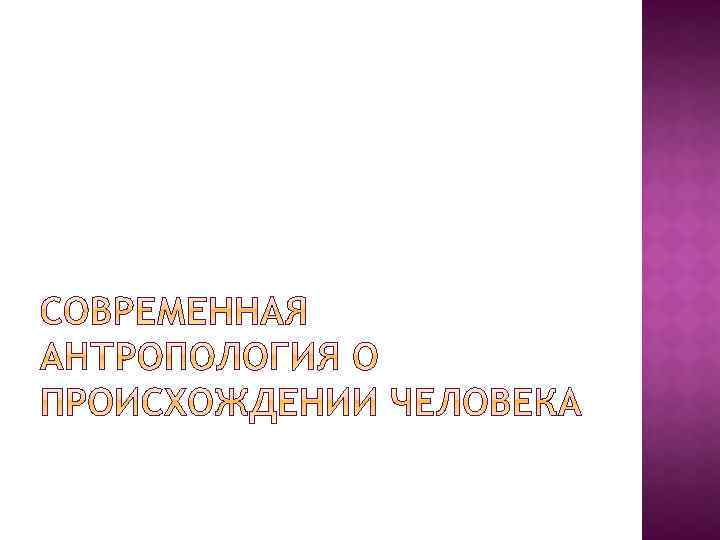 1. 2. 3. 4. 5. 6. Человек произошел от нижестоящей животной формы, т. е. является частью животного царства. Предками человека являлись обезьяноподобные животные, жившие на деревьях. Человек появился на земле в третичном периоде (палеолит – 2512 тыс. лет назад). Родина человечества – Африка. Последовательность появления человеческих свойств следующая: сначала двуногое хождение, затем обращение к орудиям естественного происхождения, небольшое увеличение массы мозга, изготовление первого орудия, прогрессивное мощное увеличение массы мозга и его усложнение. Эволюция человека – цепочка из случайностей и закономерностей, которая поэтому полностью невоспроизводима.