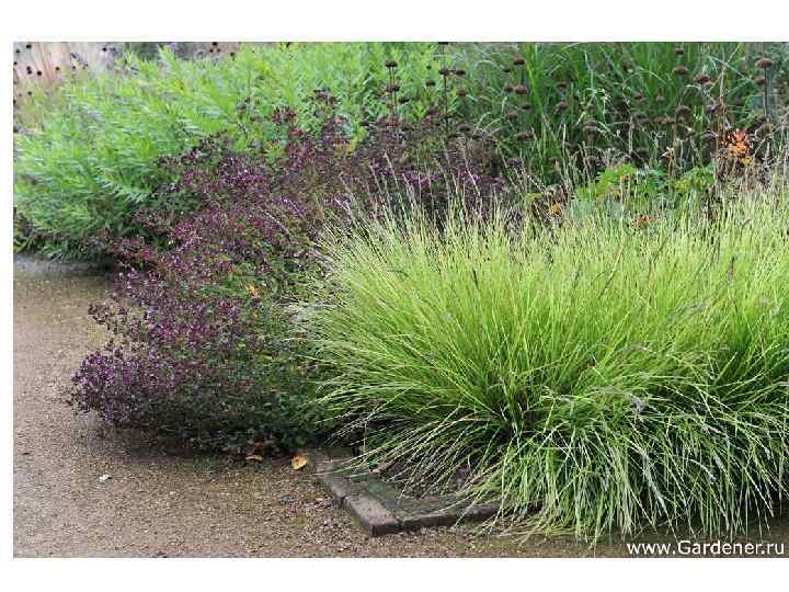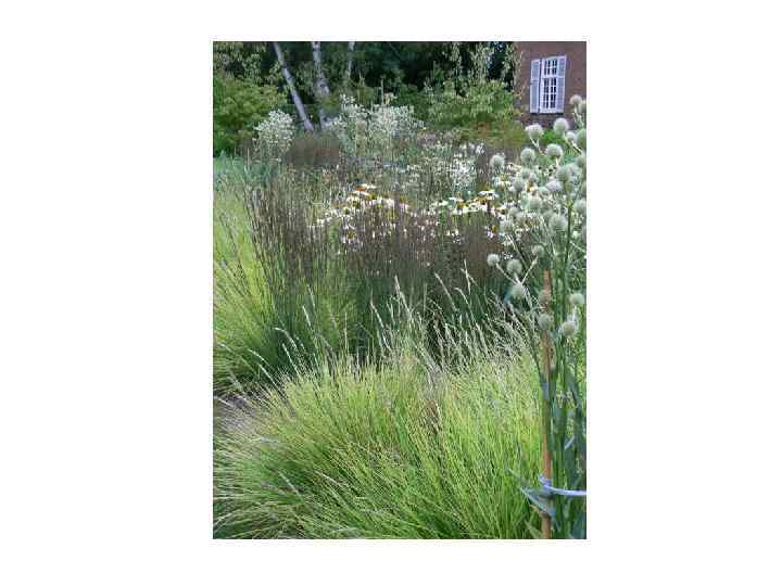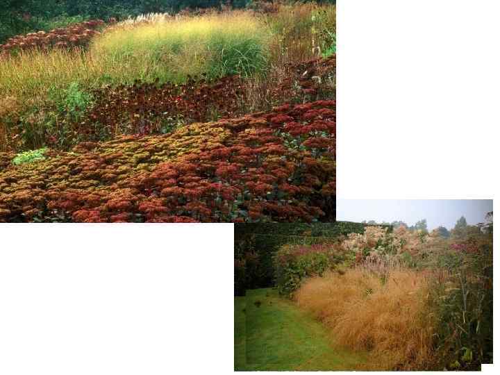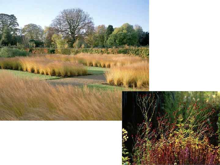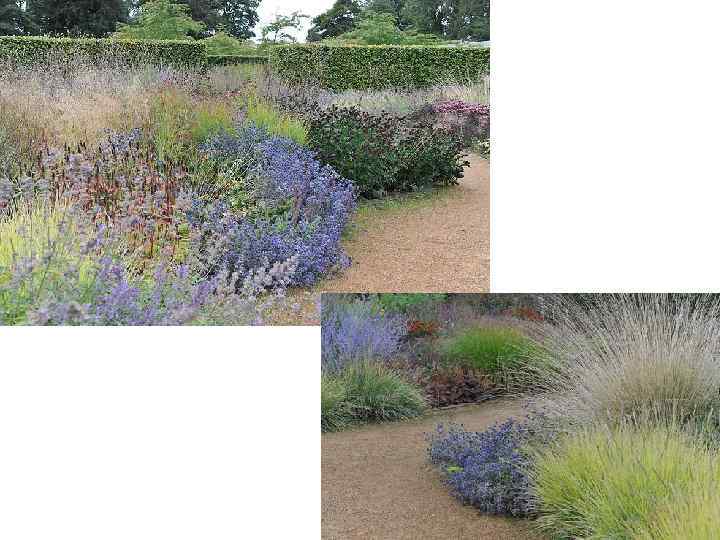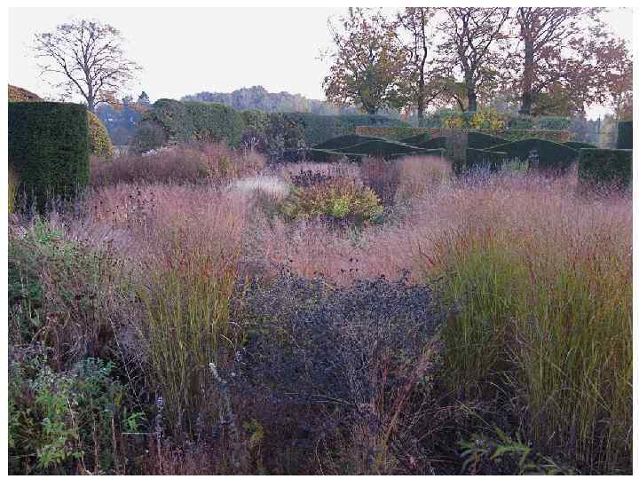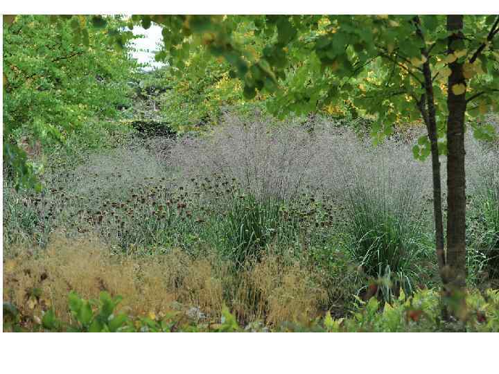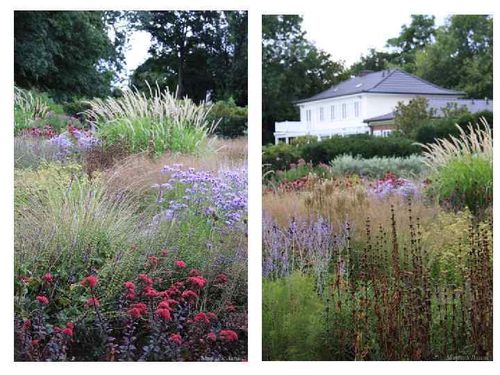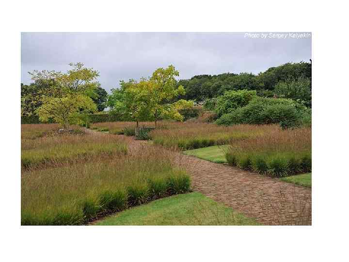 Но главное – здесь есть множество разных трав. Пышные поляны, травяные бордюры, крупные полоски, диагонально пересекающие одну из “комнат”, как зубья расчески; бронзовые, красные, сиреневые, серебристые стебли и метелки – и видам трав, и способам их использования нет числа