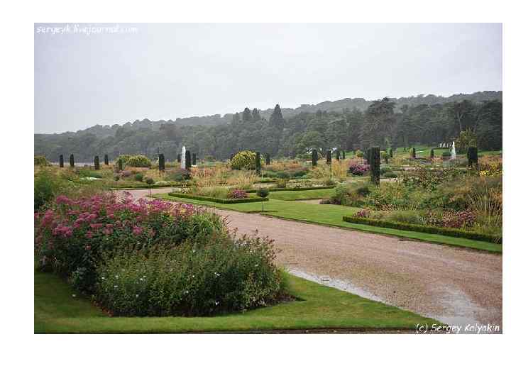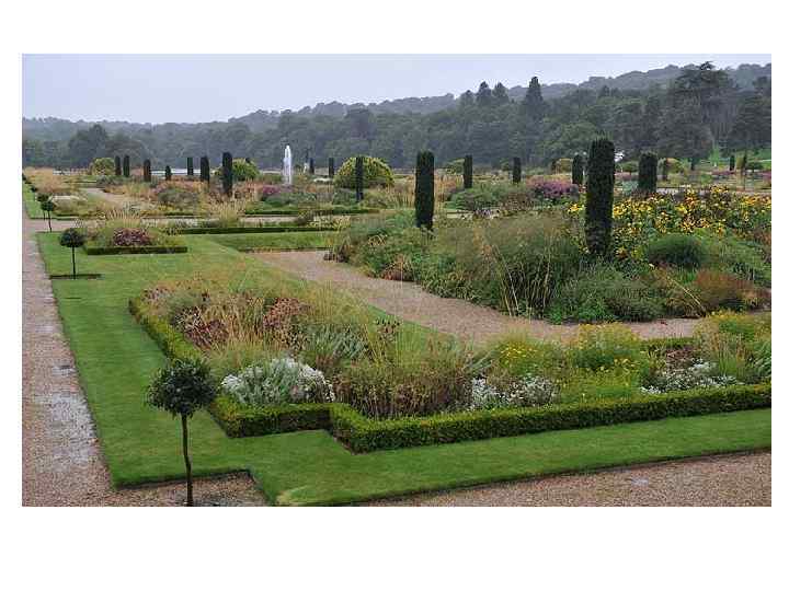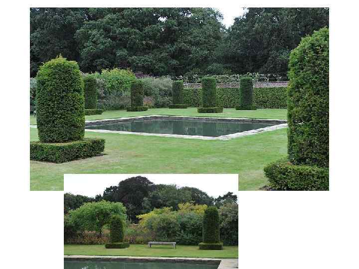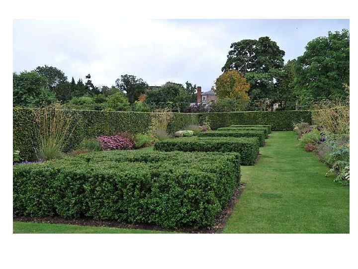 Сад серпантин состоит из фигурных тисовых изгородей