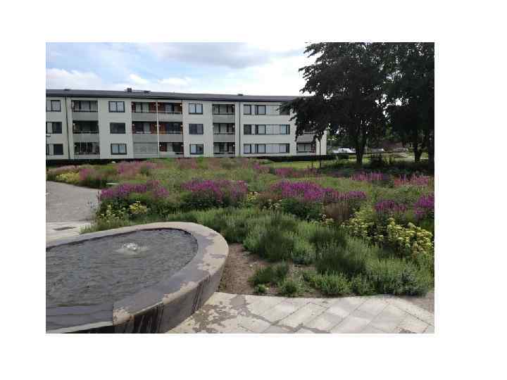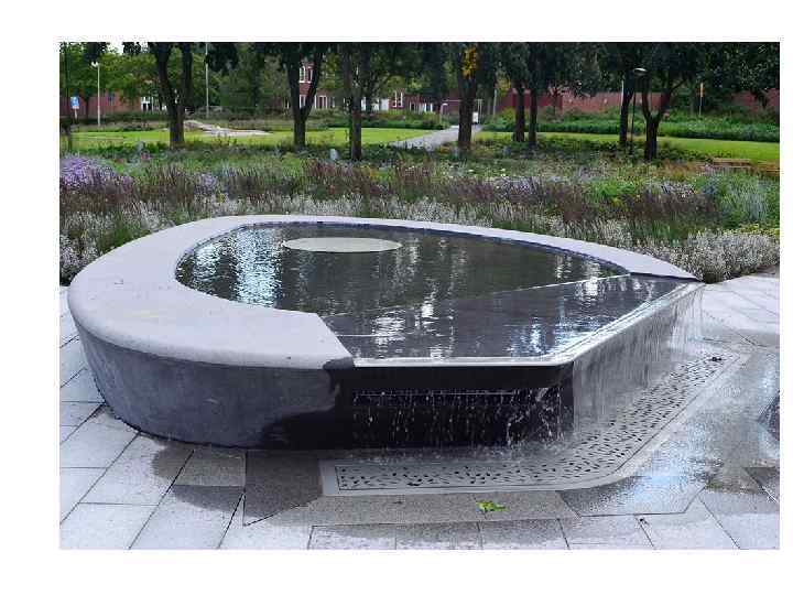 В традициях голландского ландшафтного дизайна Удолф сделал композицию регулярной, использовал много стриженой зелени. Он разбил сад на “внешние комнаты”, которые различаются по колориту и планировке, привнося в сад разнообразие. Здесь есть квадратный пруд, окруженный колоннами из стриженого тиса. Есть земляная пирамида высотой в пять метров – с нее можно увидеть сад в плане. На переднем плане заросли молинии, на заднем — оранжевая листва сумаха. Деревянные скамьи сделаны по дизайну Пита Хейна Эка.