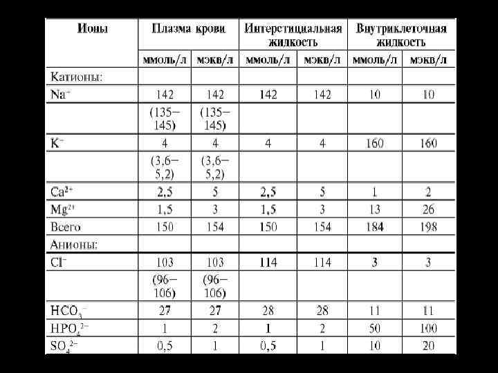 Жесткие константы крови: 1. 2. 3. 4. 5. ионный состав крови, осмотическое давление крови, количество белков в плазме, онкотическое давление, р. Н крови.