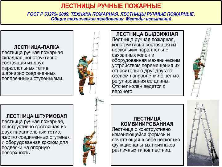 1 -й учебный вопрос. ПОЖАРНЫЕ ЛЕСТНИЦЫ. РУЧНЫЕ ПОЖАРНЫЕ ЛЕСТНИЦЫ НАЗНАЧЕНИЕ, ВИДЫ, УСТРОЙСТВО И ТЕХНИЧЕСКИЕ ХАРАКТЕРИСТИКИ.