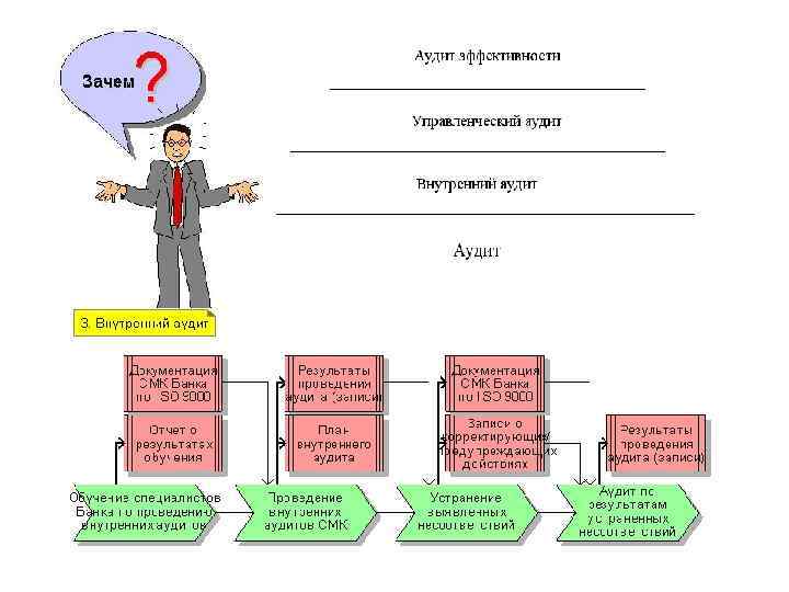 Этап 6. Тестирование СМК и внутренний аудит 1. опытная эксплуатация СМК (запуск процессов контроля процесса закупок, затем производства и т. п. ) 2. проведение внутреннего аудита специальных процедур по проверке работы СМК (возможно, раз в неделю), затем реже (один раз в месяц или даже в квартал).