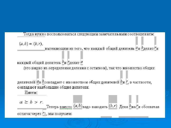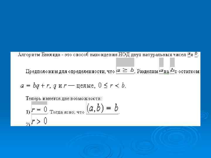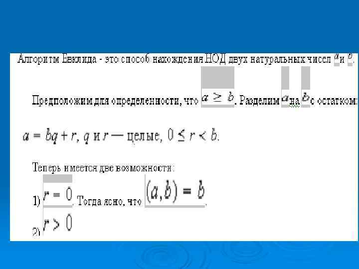 Алгоритм Евклида. Ø Алгоритм Евклида - это способ нахождения НОД двух натуральных чисел Ø Пример Ø Пусть а = 525, b = 231. Найдем НОД ( алгоритм Евклида )