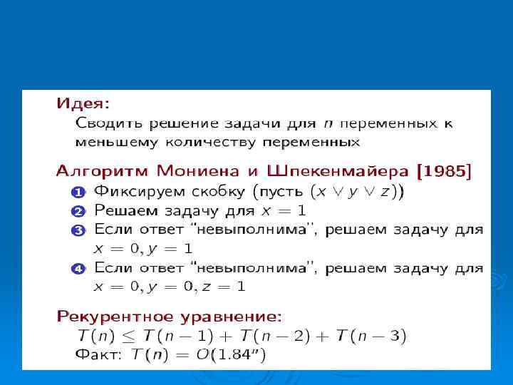 Направления в теории алгоритмов l l l Классическая теория алгоритмов формулировка задач в терминах формальных языков, понятие задачи разрешения, введение сложностных классов, открытие класса NP-полных задач и его исследование);