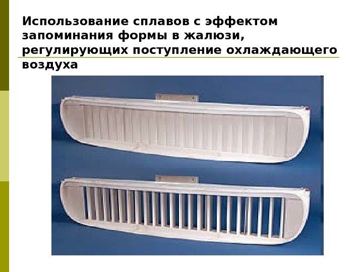 Использование сплавов с эффектом запоминания формы в жалюзи, регулирующих поступление охлаждающего воздуха