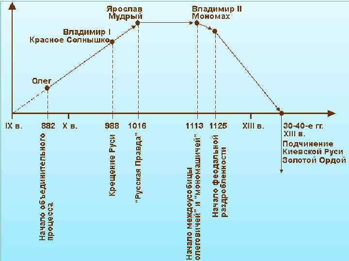2 период: конец X – первая половина XI вв. - расцвет Киевской Руси. Владимир Красное Солнышко около 960 г. — 15 июля 1015 г. Ярослав Мудрый около 978 г. — 19 или 20 февраля 1054 г.