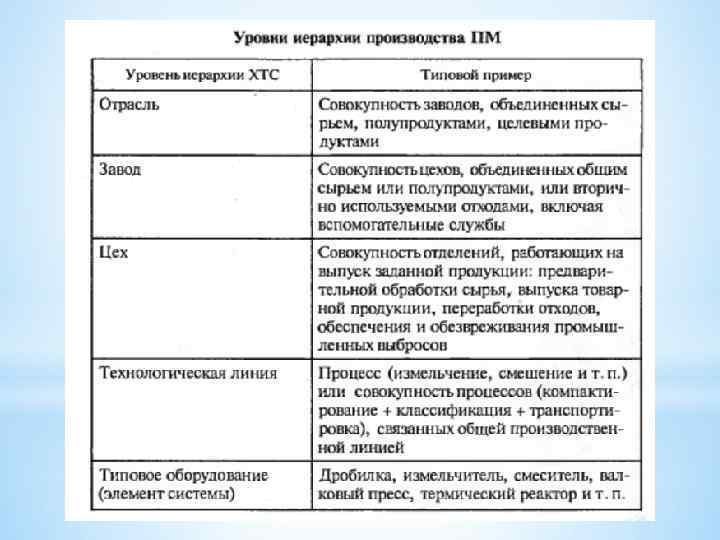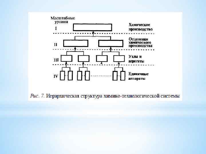 Масштабные подсистемы как отдельные части технологического процесса выполняют определенные функции в последовательности процессов переработки сырья в продукты. Масштабные подсистемы ТС также можно систематизировать в виде их иерархической последовательности- иерархической структуры ТС