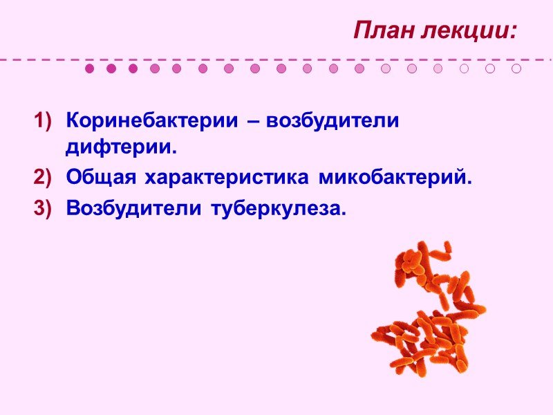 План лекции: Коринебактерии – возбудители дифтерии. Общая характеристика микобактерий. Возбудители туберкулеза.