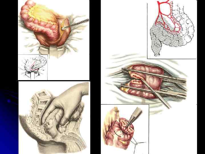 Радикальные операции по поводу рака прямой кишки l Передняя резекция прямой кишки l Брюшно анальная резекция прямой кишки l Брюшно промежностная экстирпация прямой кишки l Операция Гартмана