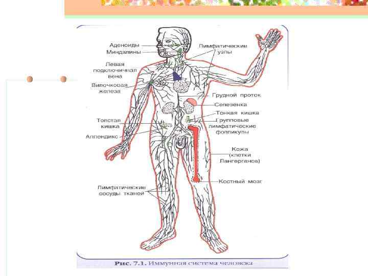 Органы иммунной системы: n 1. Центральные – костный мозг, тимус, пейеровы бляшки и солитарные фолликулы кишечника. n 2. Периферические – лимфатические узлы, селезенка и др.